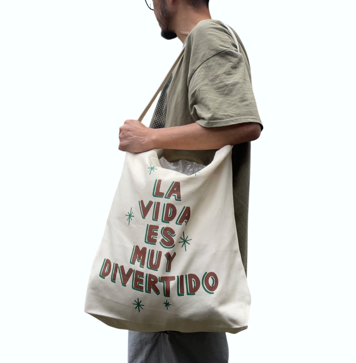 キャンバス生地の3way(手持ち、肩がけ、ショルダー)仕様のバックになります。